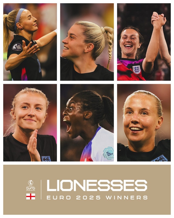 阿森納女足官推曬照:再次榮膺歐洲冠軍!祝賀我們六位“三獅軍團”成員衛冕歐洲杯冠軍。