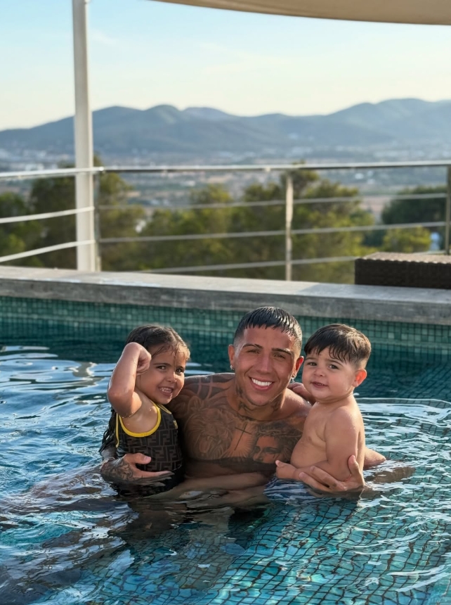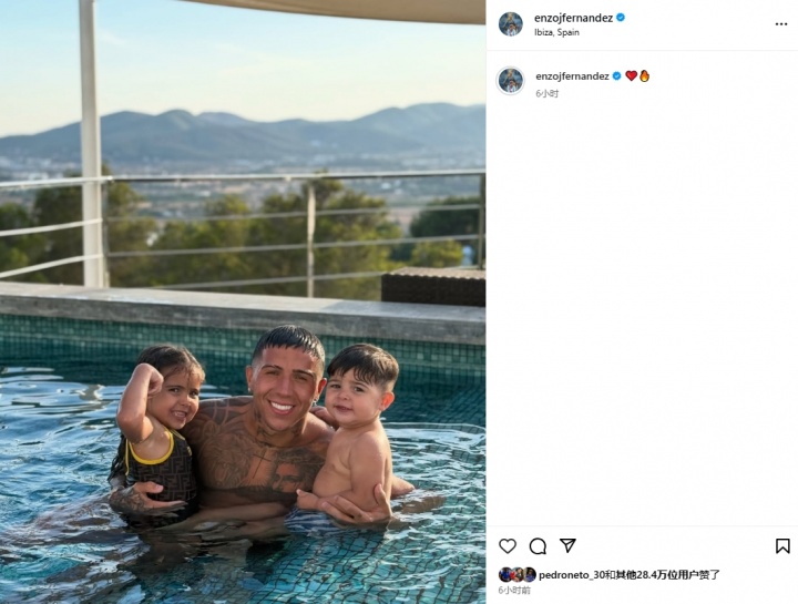 07月28日訊 切爾西中場(chǎng)恩佐社媒曬照,與兒女一起在泳池嬉戲。
