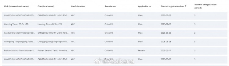 7月23日,根據國際足聯(lián)轉會(huì )禁令系統信息,新增一條關(guān)于遼寧鐵人俱樂(lè )部的轉會(huì )注冊禁令,禁令周期為三個(gè)轉會(huì )窗口。