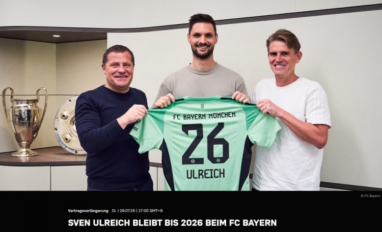 7月29日訊 拜仁官方消息,俱樂(lè )部與36歲門(mén)將烏爾賴(lài)希續約,球員將繼續在拜仁效力一個(gè)賽季。