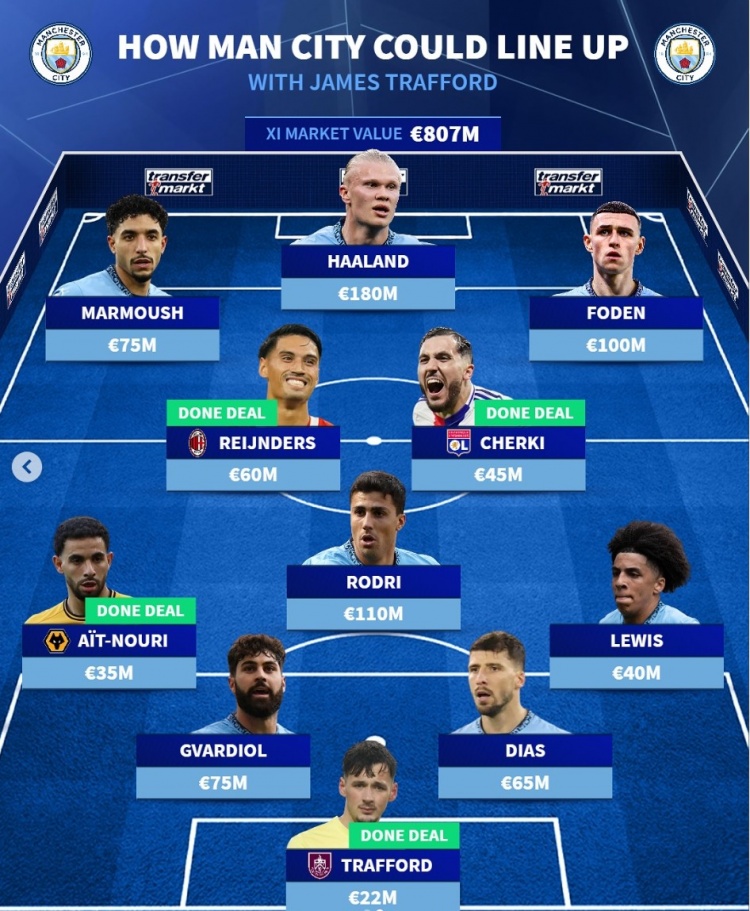 7月30日訊 曼城已經(jīng)官宣簽下伯恩利門(mén)將特拉福德,《轉會(huì )市場(chǎng)》也預測了曼城新賽季主力陣容,4位新援在列。