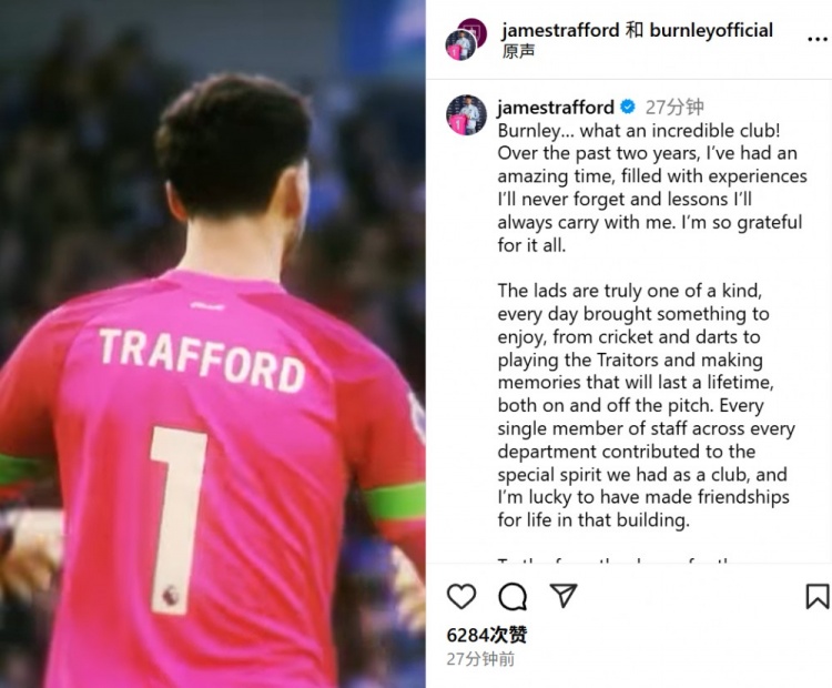 7月30日訊 曼城已經(jīng)官宣簽回22歲門(mén)將特拉福德,后者也通過(guò)社媒發(fā)文告別伯恩利:
