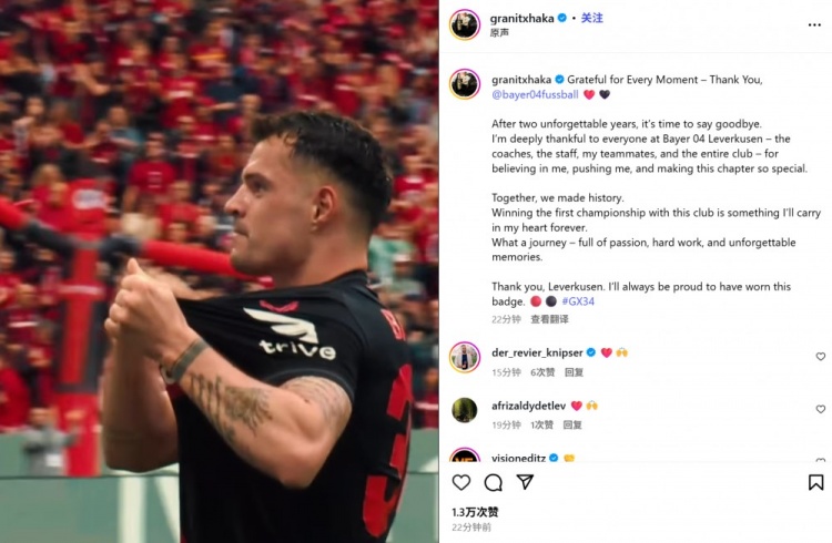 7月30日訊 勒沃庫森已經(jīng)官宣32歲的中場(chǎng)扎卡轉會(huì )桑德蘭,后者也通過(guò)社媒發(fā)文告別: