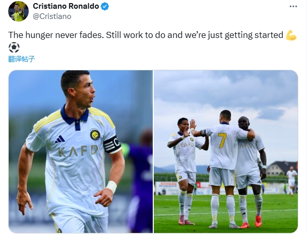 07月31日訊 友誼賽利雅得勝利2-1逆轉圖盧茲,C羅出戰半場(chǎng)打進(jìn)一起,賽后他社媒發(fā)文慶祝。