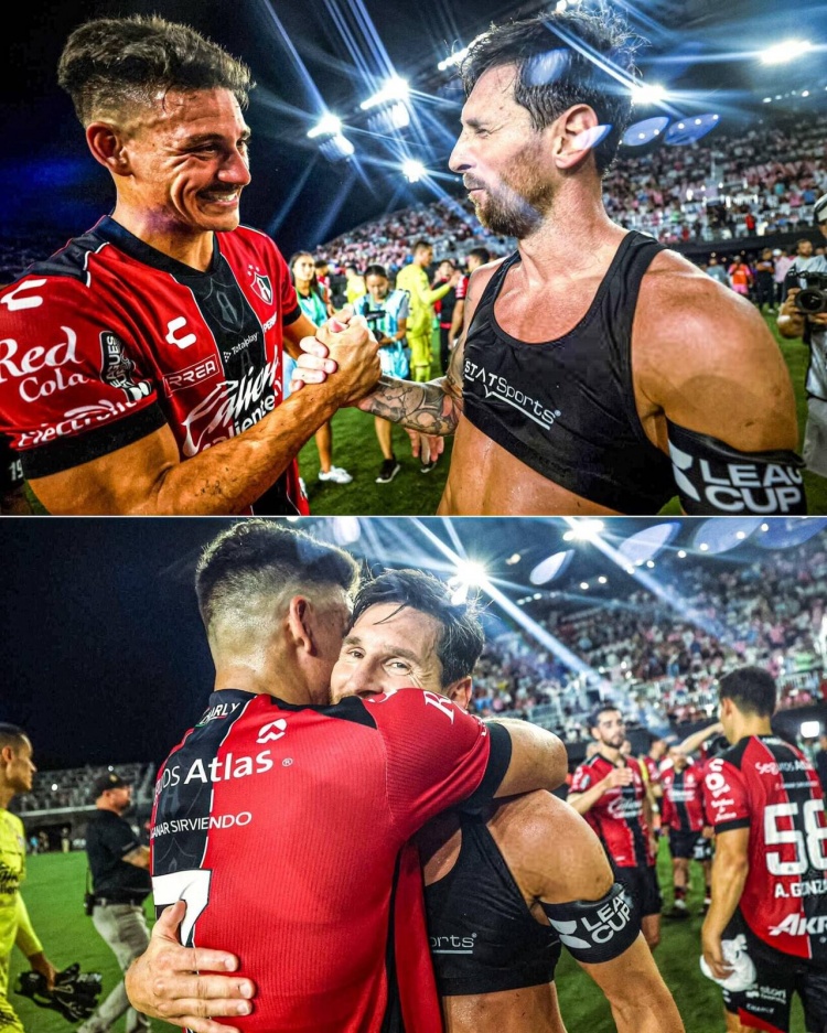 邁阿密?chē)H絕殺之后,梅西摟著(zhù)德保羅在阿特拉斯球員科卡羅面前慶祝,比賽結束后梅西與科卡羅友好擁抱,后者獲得了梅西的球衣,并在媒體面前展示。