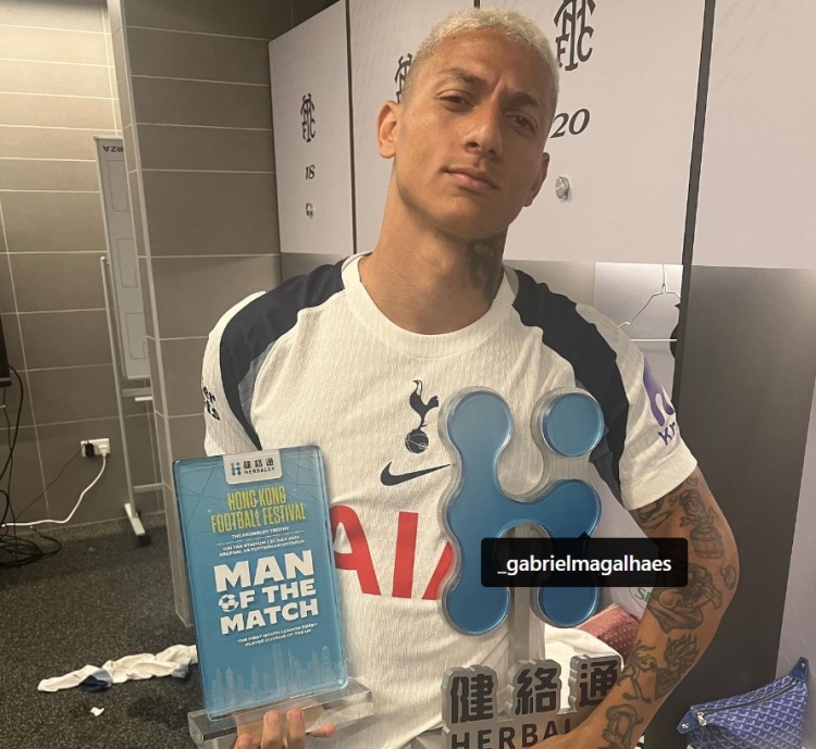 8月1日訊 季前友誼賽,熱刺1-0擊敗阿森納,熱刺前鋒理查利森獲評全場(chǎng)比賽最佳球員。