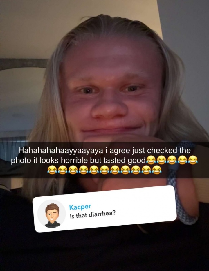 但這頓晚餐的賣(mài)相引起了球迷的吐槽,有一名球迷調侃道:“這是腹瀉了嗎?”哈蘭德本人則回復了這條評論:哈哈哈,我同意,雖然照片看起來(lái)很惡心但是吃起來(lái)不錯。
