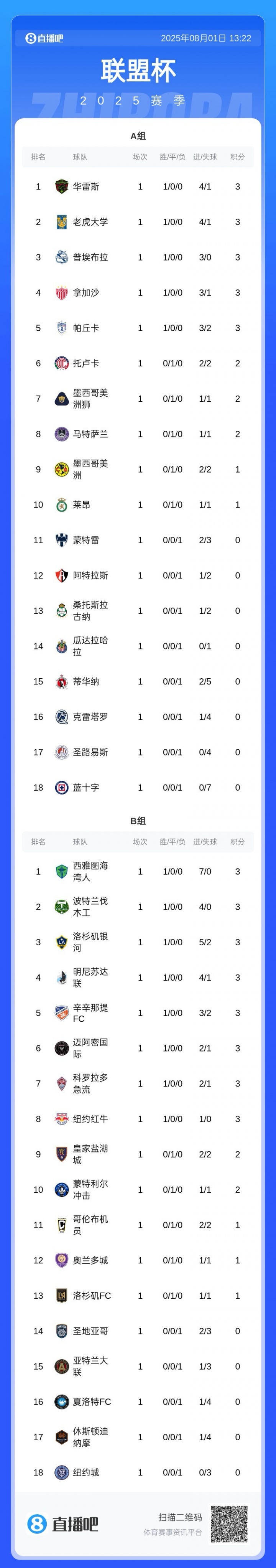 08月01日訊 聯(lián)盟杯小組賽首輪比賽全部結束。