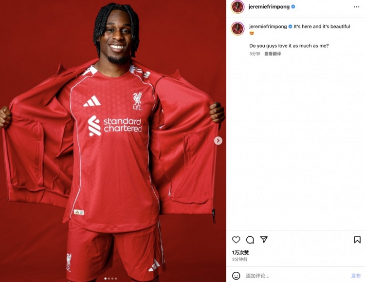 弗林蓬社媒寫(xiě)道:它在這里,簡(jiǎn)直太漂亮了??,你們是不是也和我一樣喜歡這件球衣?