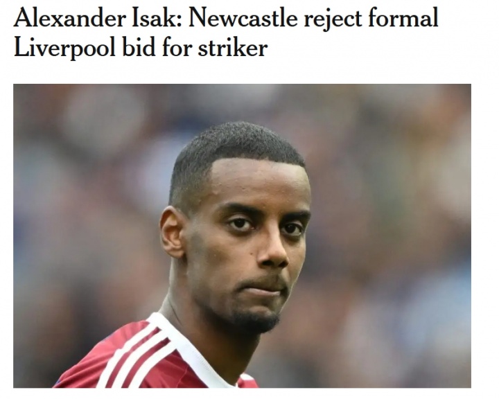08月01日訊 TA記者奧恩斯坦獨家消息,紐卡拒絕了利物浦對伊薩克的正式報價(jià)。
