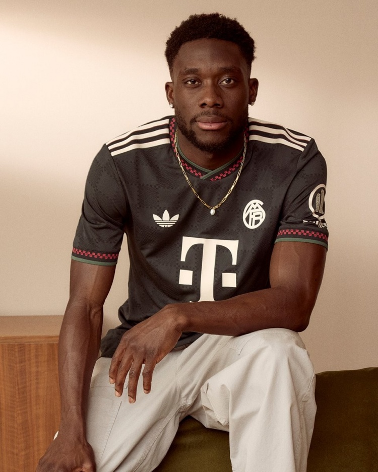 球衣以黑色為主,搭配灰白色徽標、卡其色和紅色細節,以及獨特的格紋設計。