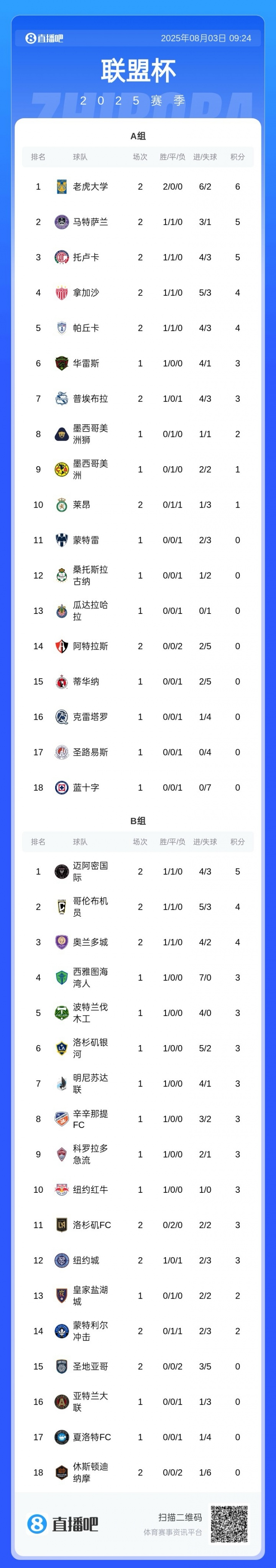 08月03日訊 聯(lián)盟杯第二輪,邁阿密?chē)H點(diǎn)球大戰擊敗拿加沙,取得兩個(gè)積分,賽后2輪5分暫時(shí)升至B組第一,同時(shí)間仍有其他場(chǎng)次在進(jìn)行。