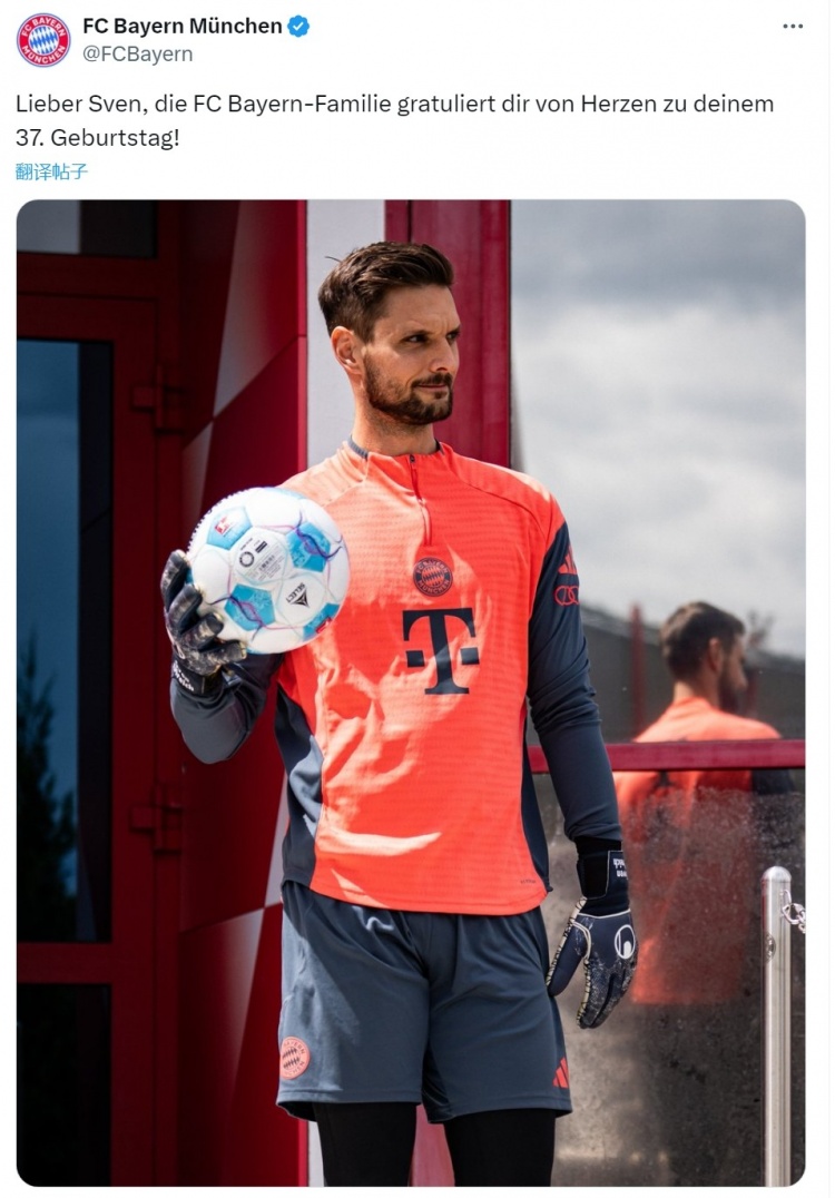 拜仁官方社媒曬出烏爾賴(lài)希的照片,配文:“親愛(ài)的斯文,拜仁慕尼黑大家庭衷心為你送上37歲生日的美好祝福!”