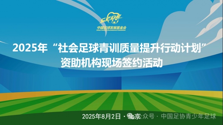 為貫徹落實(shí)全國足球工作會(huì )議精神,助力青訓體系建設,2025年8月2日,中國足球發(fā)展基金會(huì )“社會(huì )足球青訓質(zhì)量提升行動(dòng)計劃”資助機構現場(chǎng)簽約活動(dòng)在北京體育大學(xué)舉辦,共有來(lái)自全國28個(gè)省、自治區、直轄市的97家社會(huì )青訓機構負責人參加了此次活動(dòng)。