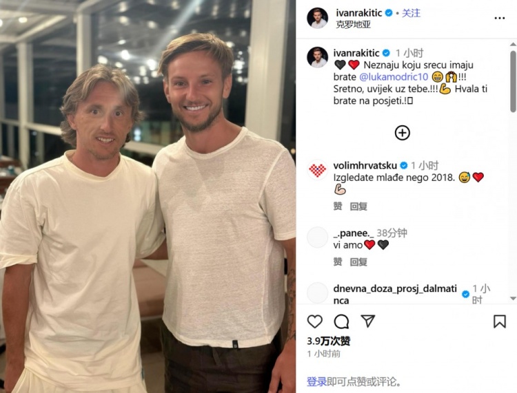 拉基蒂奇曬出與莫德里奇的合照,并配文寫(xiě)道:“他們不知道自己有多幸運,兄弟@莫德里奇?。?!祝你好運,永遠支持你?。?!感謝你的來(lái)訪(fǎng),兄弟!”