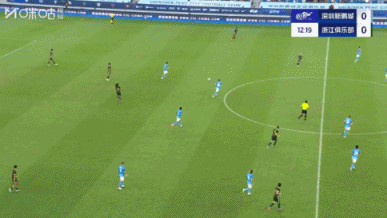 比賽第13分鐘,浙江隊進(jìn)攻,米特里策斜傳右路,王鈺棟得球后嘗試抽射但遺憾打偏。
