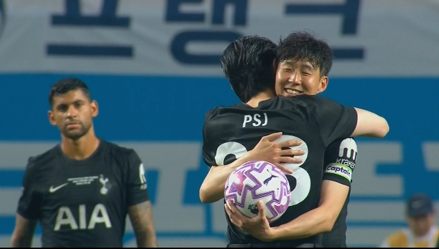 賽前,韓國知名演員樸敘俊擔任嘉賓,為本場(chǎng)比賽開(kāi)球,隨后與熱刺隊長(cháng)、韓國球星孫興慜微笑擁抱。