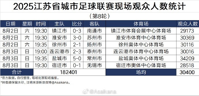 2025江蘇省城市足球聯(lián)賽現場(chǎng)觀(guān)眾人數統計(第8輪) ???