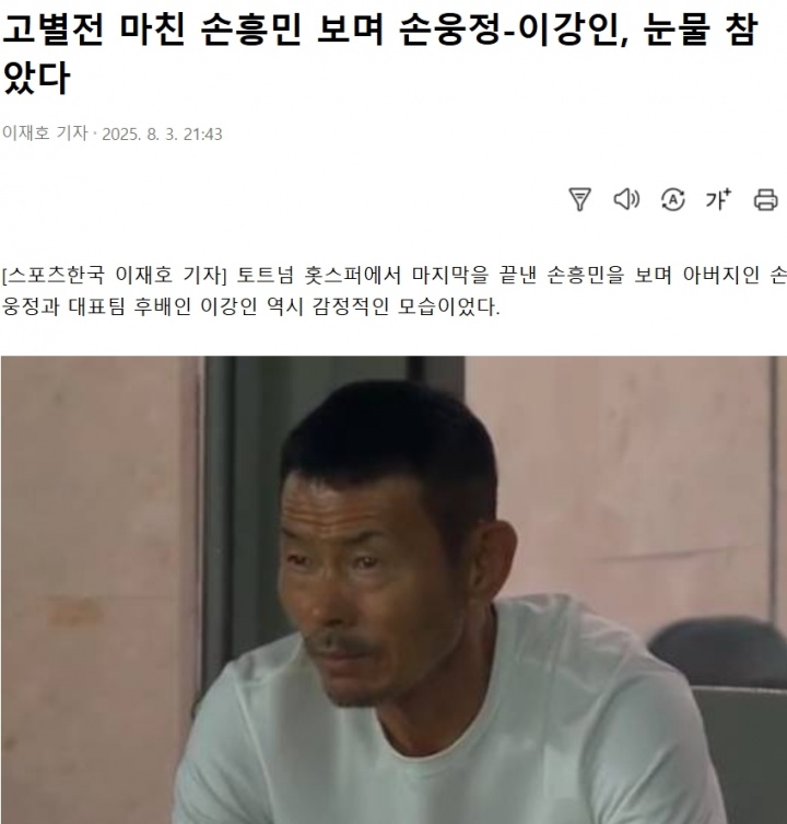韓媒:父親孫雄正現場(chǎng)觀(guān)看孫興慜熱刺告別戰,強忍淚水