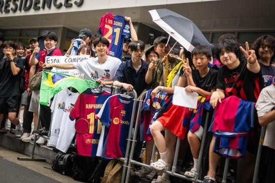 約百名球迷手持旗幟、球衣和標語(yǔ)在球隊下榻酒店守候。從日本到韓國,巴薩始終受到當地擁躉的熱情追捧,大邱也不例外。這場(chǎng)亞洲冒險的終章,將于今夜在大邱體育場(chǎng)書(shū)寫(xiě)完畢。