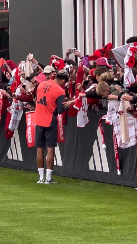 在Victor Catalina的視頻中可以看到,場(chǎng)邊有眾多拜仁球迷希望獲得路易斯-迪亞斯的簽名,球員也非常有耐心,不僅為球迷們簽名,還熱情合影。