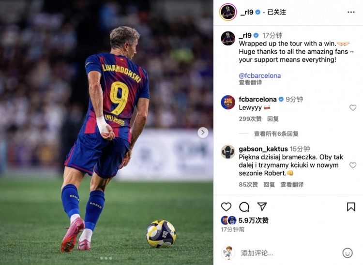 賽后,萊萬(wàn)更新社媒向球迷致謝:以一場(chǎng)勝利圓滿(mǎn)結束巡回賽。????????衷心感謝所有了不起的球迷,你們的支持對我們意義重大!