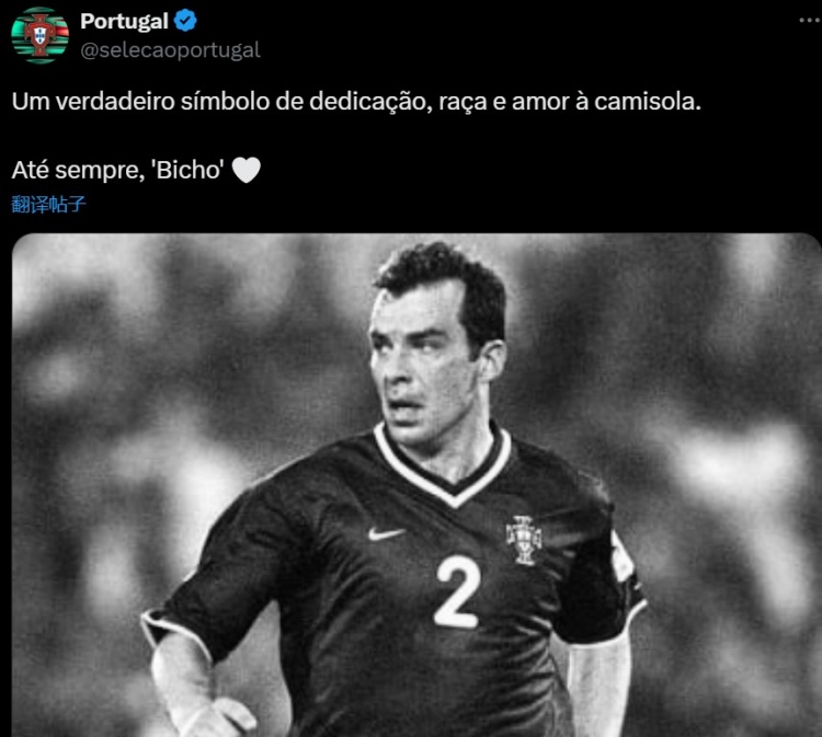 葡萄牙官方寫(xiě)道:“一個(gè)真正代表了奉獻、血性和對球衣熱愛(ài)的象征。永遠懷念你,‘野獸’ ??”