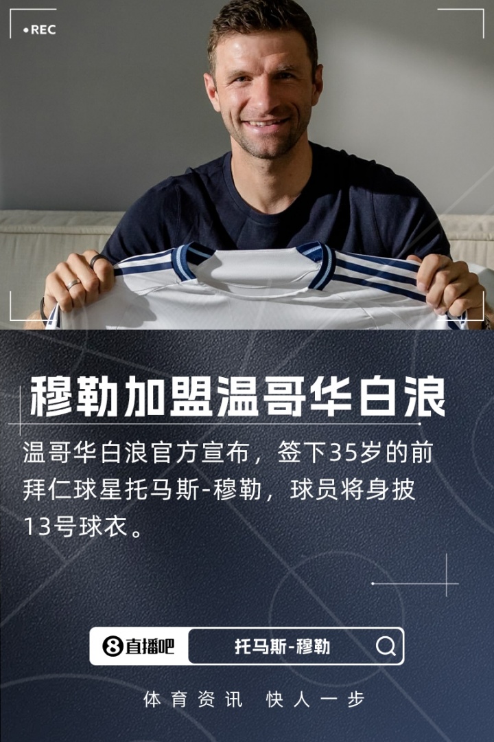 08月07日訊 溫哥華白浪官方宣布,簽下35歲的前拜仁球星穆勒,他將身披13號球衣。