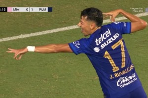 傷停補時(shí)3分鐘。全場(chǎng)比賽結束,邁阿密?chē)H3-1墨西哥美洲獅。