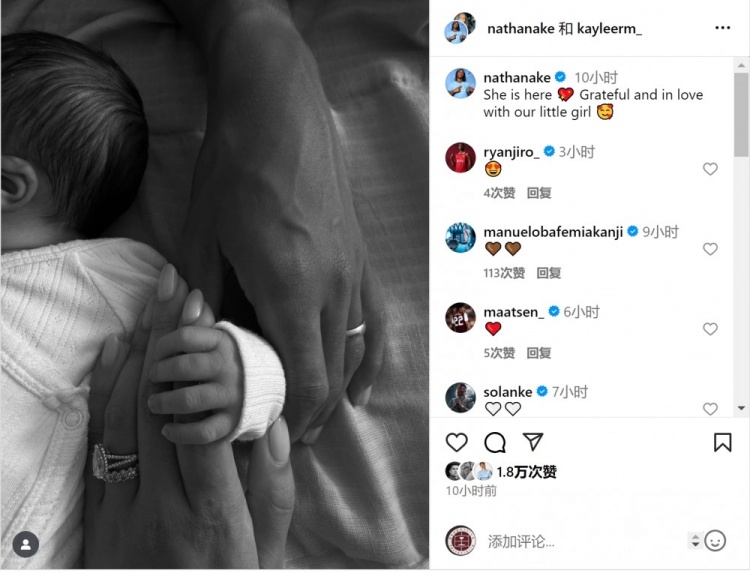 8月8日訊 曼城后衛阿克更新社媒動(dòng)態(tài),宣布女兒出生。