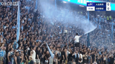 轉播鏡頭給到主隊球迷區,有噴水槍為現場(chǎng)助威的主隊球迷進(jìn)行烘托氣氛&降溫。