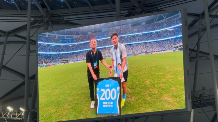 8月8日訊 據博主“從小就是大連球迷”報道,今晚大連英博主場(chǎng)對陣成都蓉城的賽前,大連英博俱樂(lè )部為宋岳頒發(fā)了職業(yè)生涯200場(chǎng)紀念球衣。