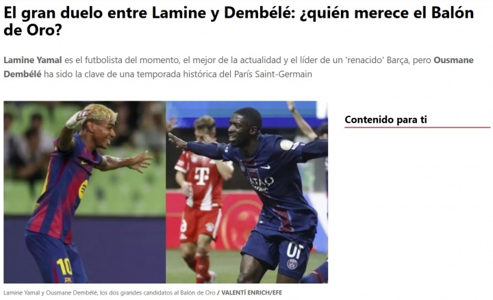 此外,在西甲聯(lián)賽中與皇家馬德里進(jìn)行永恒的較量并最終奪冠,其意義也不同于贏(yíng)得法甲聯(lián)賽。所有這些因素都需要放在天平上衡量,并且要考慮到投票的是來(lái)自世界各地的記者,包括那些偏遠地區的記者,他們看到的往往是那些震撼世界、引發(fā)轟動(dòng)的精彩表現。而在這方面,亞馬爾是無(wú)可匹敵的。