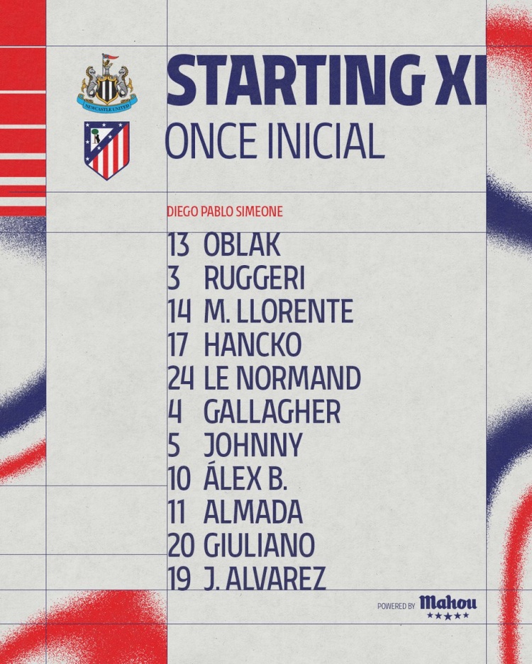 馬競首發(fā):13-奧布拉克、3-魯杰里、14-馬科斯-略倫特、17-漢茨科、24-勒諾爾芒、4-加拉格爾、5-卡爾多索、10-巴埃納、11-阿爾馬達、20-朱利亞諾-西蒙尼、19-阿爾瓦雷斯