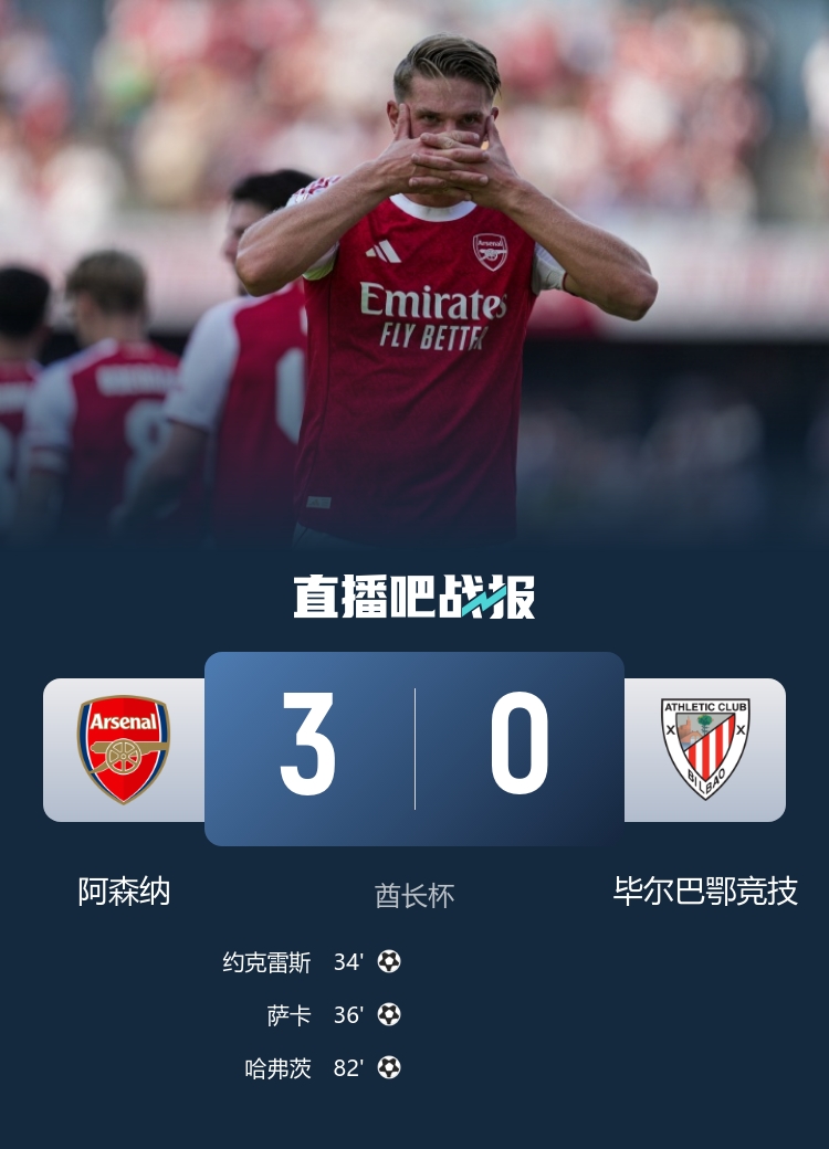8月10日訊 北京時(shí)間00:00,酋長(cháng)杯阿森納vs畢爾巴鄂競技,比賽在酋長(cháng)球場(chǎng)打響!上半場(chǎng),阿森納2分鐘2球,約克雷斯、薩卡破門(mén)!下半場(chǎng),約克雷斯魚(yú)躍沖頂中柱;薩卡助攻哈弗茨單刀破門(mén)!全場(chǎng)比賽結束,阿森納3-0戰勝畢爾巴鄂競技。賽后的點(diǎn)球加練中,恩瓦內里失點(diǎn),拉亞撲點(diǎn),阿森納6-5贏(yíng)下點(diǎn)球大戰
