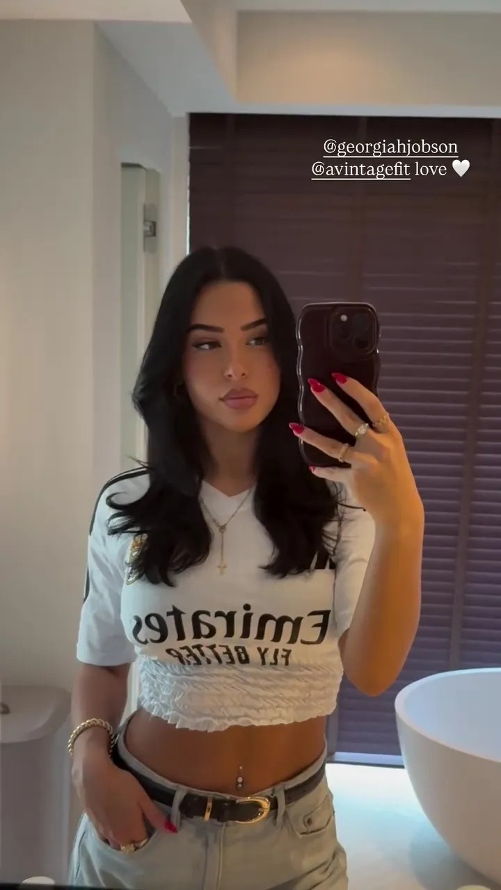 這位27歲的社交媒體明星與皇馬及英格蘭中場(chǎng)貝林厄姆相戀數月,但兩人始終將戀情保持低調。作為擁有超60萬(wàn)粉絲的網(wǎng)紅模特,艾琳常通過(guò)Ins分享其精致生活。在最新發(fā)布的鏡前自拍中,她身著(zhù)修身長(cháng)褲與背心,對鏡頭眨眼淺笑。