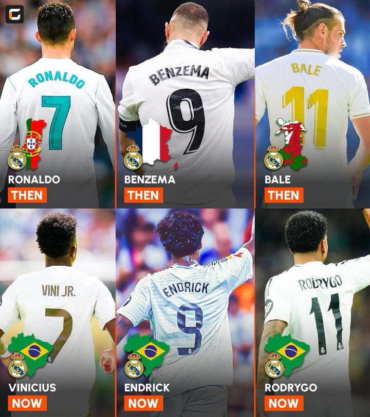 下賽季皇馬的7號、9號、11號均屬于巴西球員,維尼修斯身披7號,恩德里克身披9號,羅德里戈身披11號。