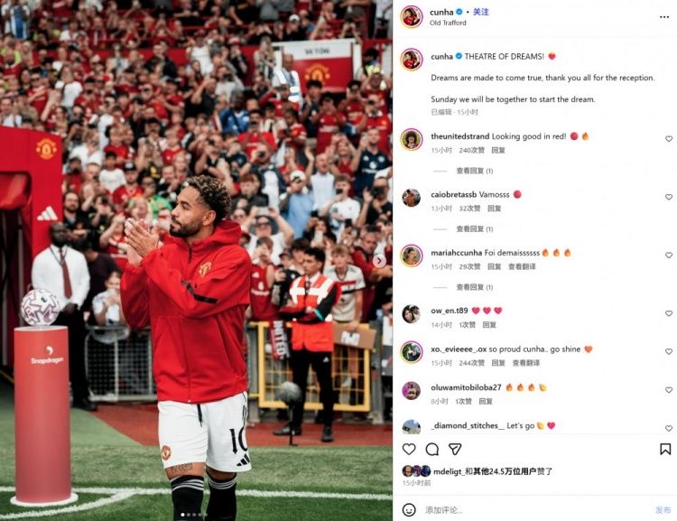 庫尼亞在個(gè)人社媒也曬照發(fā)文紀念,寫(xiě)道:“夢(mèng)劇場(chǎng)!夢(mèng)想成真的時(shí)刻,感謝大家的歡迎,周日我們將一同開(kāi)啟夢(mèng)的征程?!?/p>