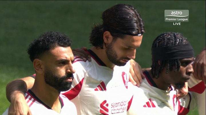 08月10日訊 社區盾杯決賽,水晶宮對陣利物浦,賽前兩隊進(jìn)行默哀,悼念此前因車(chē)禍離世的若塔兄弟。