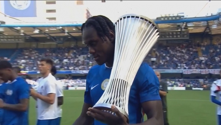 08月11日訊 切爾西4-1AC米蘭賽后,主教練馬雷斯卡、隊長(cháng)詹姆斯率領(lǐng)全隊環(huán)繞整個(gè)斯坦福橋球場(chǎng),向球迷展示上賽季獲得的世俱杯和歐協(xié)聯(lián)兩座重要賽事錦標的冠軍獎杯,并向球迷致意,感謝球迷的支持!