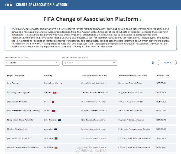 韓國完成了卡斯特羅普(Jens Castrop)的轉換代表隊手續,他今后將代表韓國國家隊出戰。
