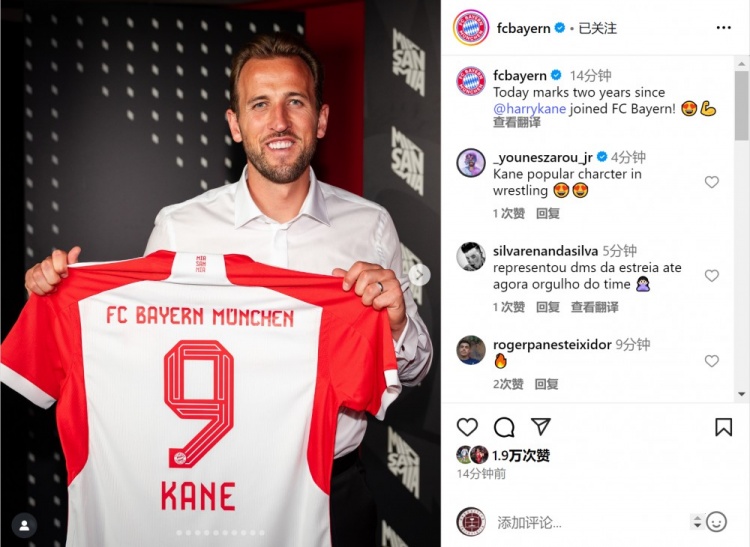 2023年8月12日,凱恩以9500萬(wàn)歐轉會(huì )費從熱刺加盟拜仁。拜仁官方社媒曬出凱恩加盟時(shí)的照片,回顧那個(gè)特別的時(shí)刻。