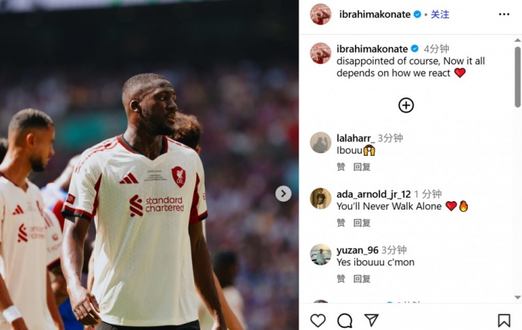 新賽季社區盾杯上周末結束,利物浦點(diǎn)球大戰不敵水晶宮,科納特賽后發(fā)文總結,他寫(xiě)道:當然(對結果)感到失望,現在一切取決于我們如何回應。