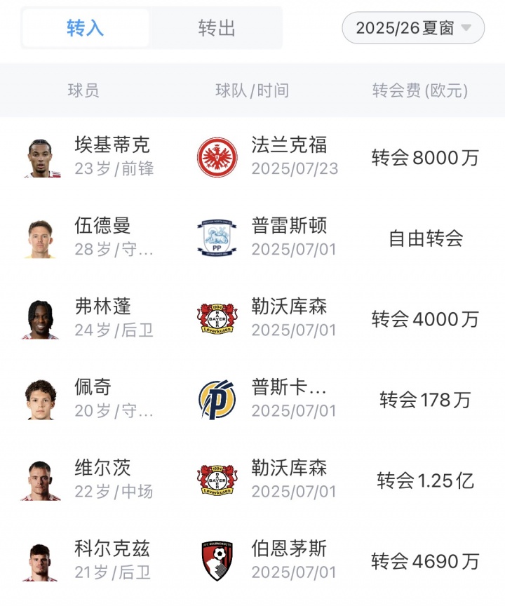 今夏利物浦一反常態(tài),花費2.9368億歐引入6人,其中包括1.25億歐簽維爾茨,以及從伯恩茅斯引進(jìn)科爾克茲。