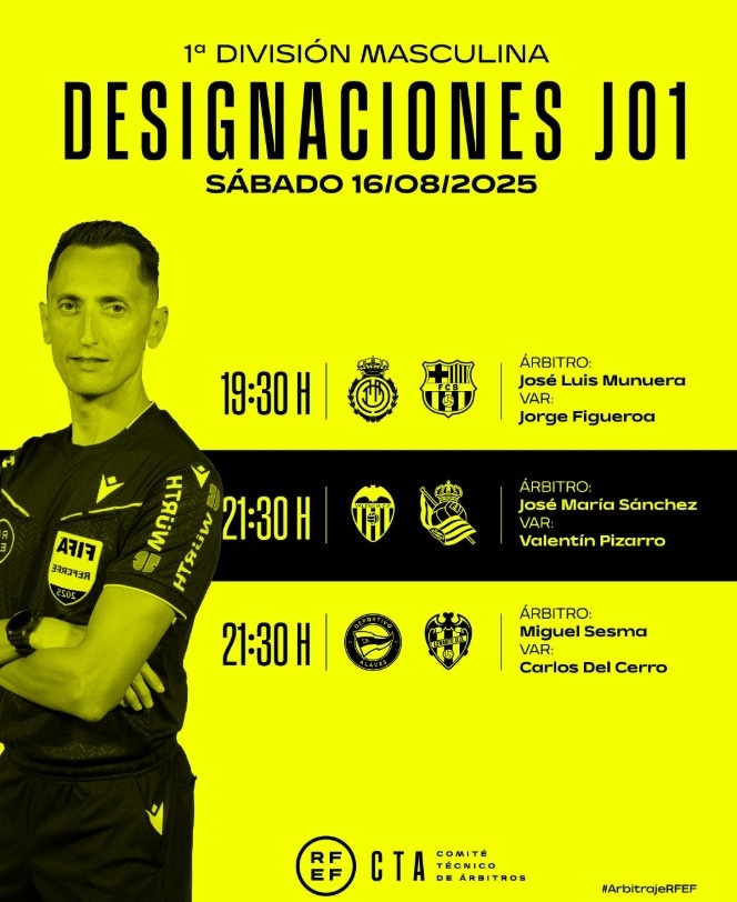 8月15日訊 西甲官方公布了北京時(shí)間周日凌晨3場(chǎng)比賽的裁判安排,其中穆努埃拉將執法巴薩客戰馬洛卡的比賽。
