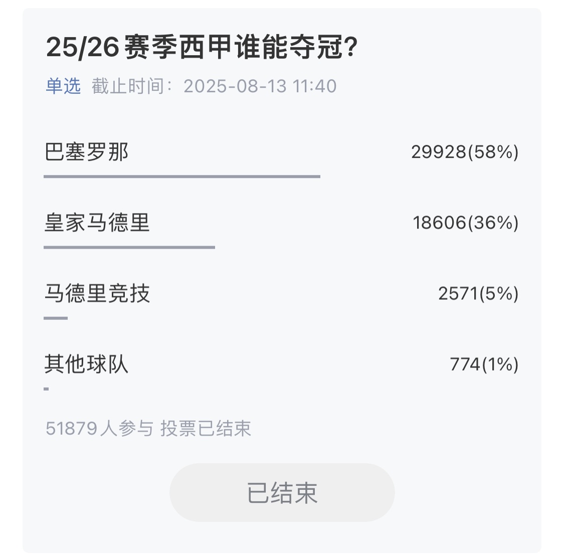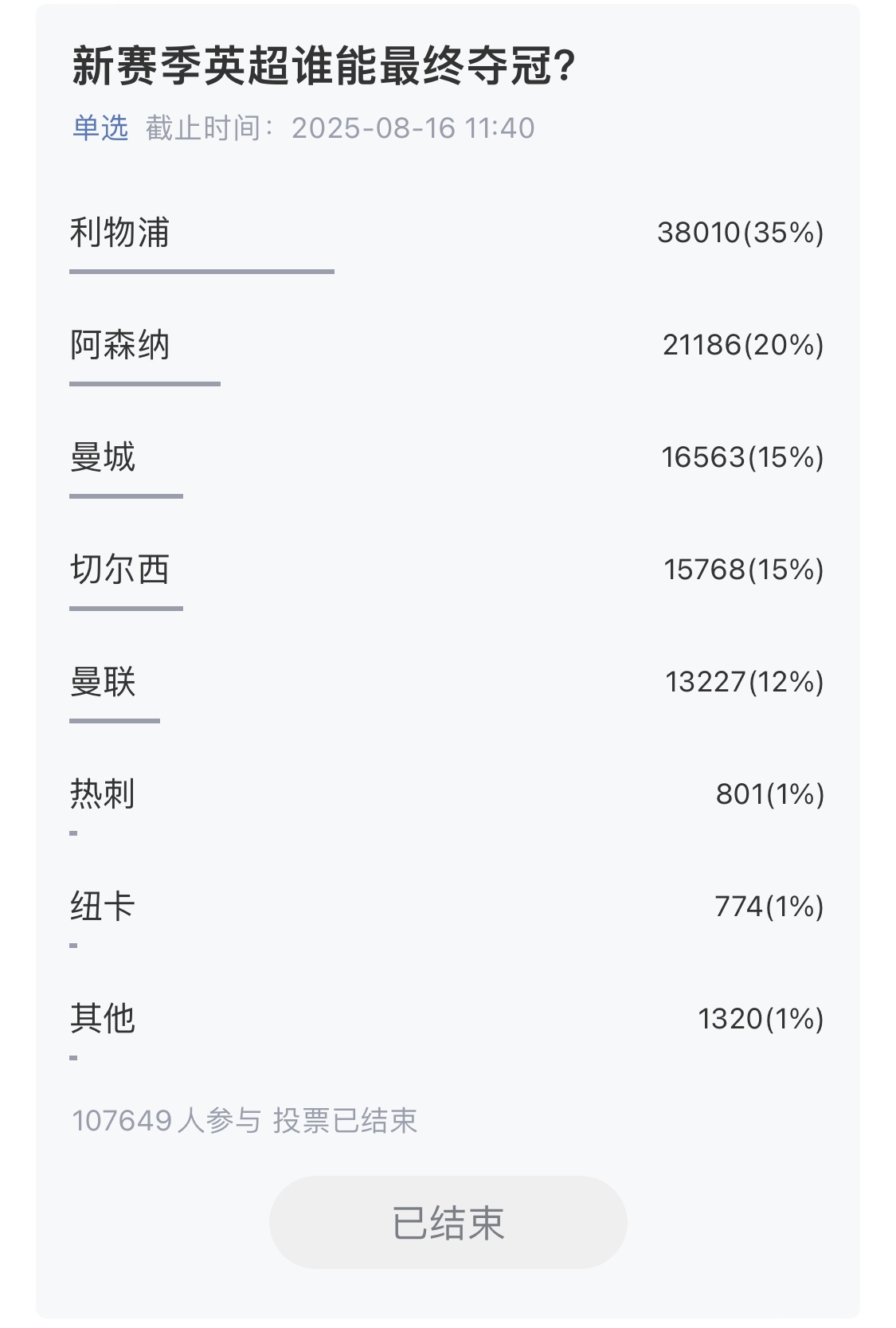 得票率最高的球隊,最終幾隊奪冠?與小吧一起拭目以待,期待新賽季越來(lái)越精彩!