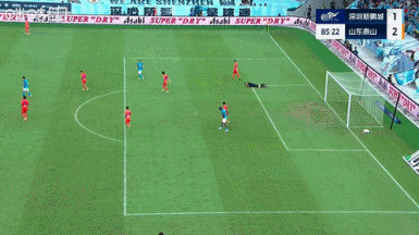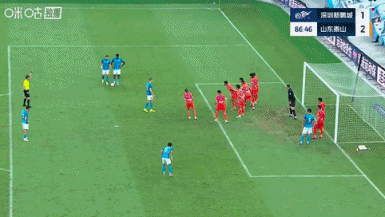 比賽第85分鐘,于金永在禁區內將皮球放下后又重新抱起,二次觸球違例送給新鵬城一個(gè)間接任意球,蒂亞戈-列昂索的打門(mén)被擋出底線(xiàn)。