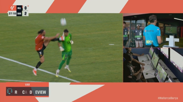 08月17日訊 新賽季西甲首輪,巴薩對陣馬洛卡。37分鐘,馬洛卡球員穆里奇踢到霍安-加西亞頭部,裁判第一時(shí)間出示黃牌,觀(guān)看VAR后改判直紅。