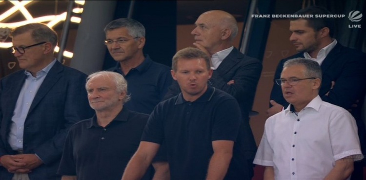 德國國家隊主帥納格爾斯曼來(lái)到了現場(chǎng),觀(guān)戰此役。