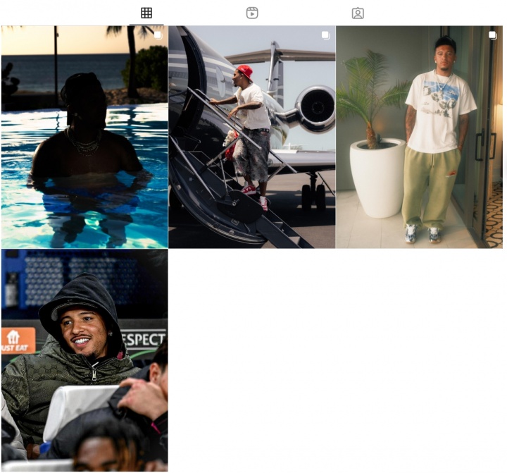 在桑喬的ins上,與足球有關(guān)的社媒幾乎已經(jīng)全部被隱藏,只留下了一張切爾西時(shí)期坐在替補席上的照片,以及三張生活照。